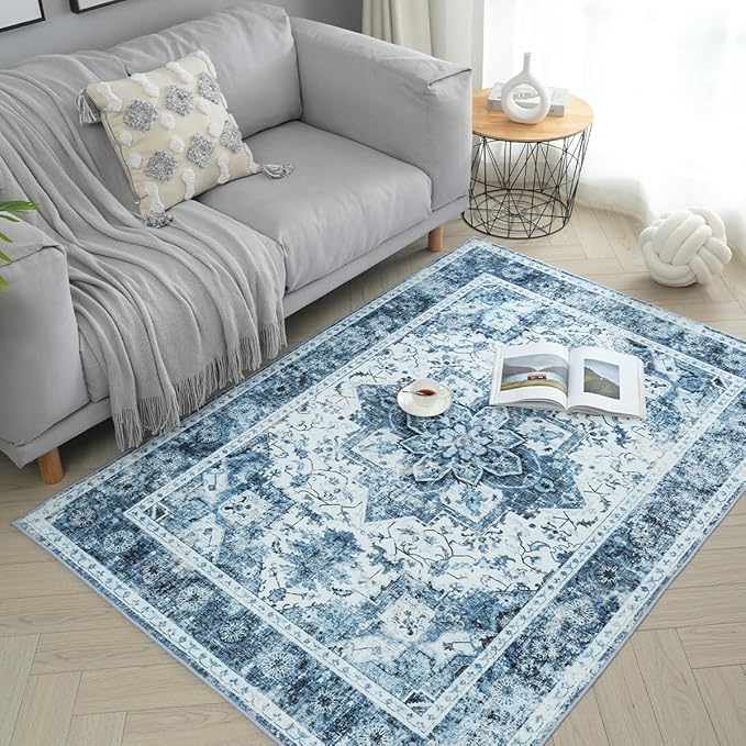 カーペット ラグ マット ペルシャ風 絨毯風 花柄 オールシーズン適用 滑り止め付き 寝室 リビング 玄関マット 地毯 じゅうたん 洗える 防音マット 防ダニ 防臭 (柄B, 120 160cm)