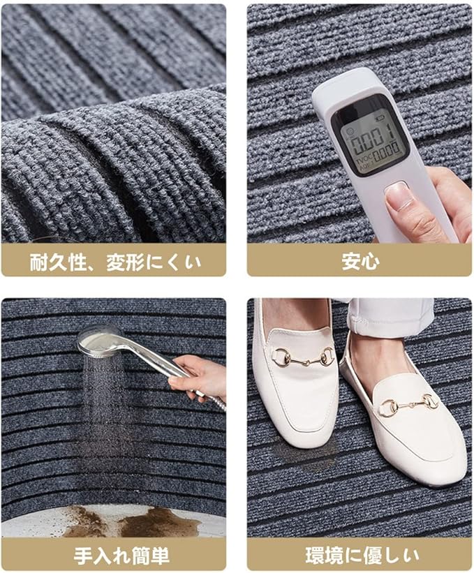 【適用範囲が広い】屋内、屋外でお使いいただける多用途マットです。ドアマット、階段マット、玄関マット、キッチンマットなどのインテリアマット等、様々な使い道でご利用いただけます。飲食店や美容院、学校、公共施設、レジャー施設といった店舗など、業務用として最適です。