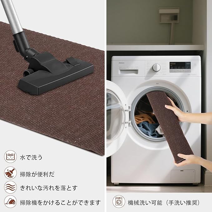 【清潔にしやすい】掃除機や箒を使ったり、マットの裏を軽くたたいてブレさせればよい。定期的にブラシやホースで洗い流すことをおすすめします。クリーニングが必要な場合は、マイルドなクリーナーを使用してください。この玄関マットは汚れに強く、使いやすい。