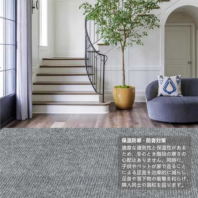 【保温防寒・防音対策】適度な通気性と保温性があるため、冬のとき階段の寒さの心配はありません。同時に、子供やペットが家で走ることによる足音を効果的に減らし、足音や落下物の衝撃を和らげ、隣人同士の調和を図ります。