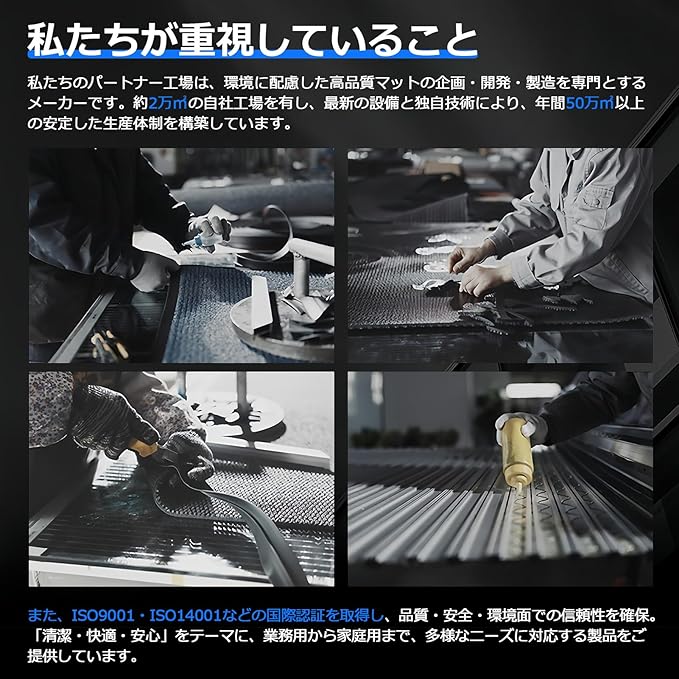 【多用途対応:玄関・駐車場・作業場に最適】 厚さ1.2cmで安心感抜群。屋外・業務用としても活躍し、冬の雪対策、梅雨の泥除け、滑り止めなど、オールシーズン頼れるプロ仕様マット。