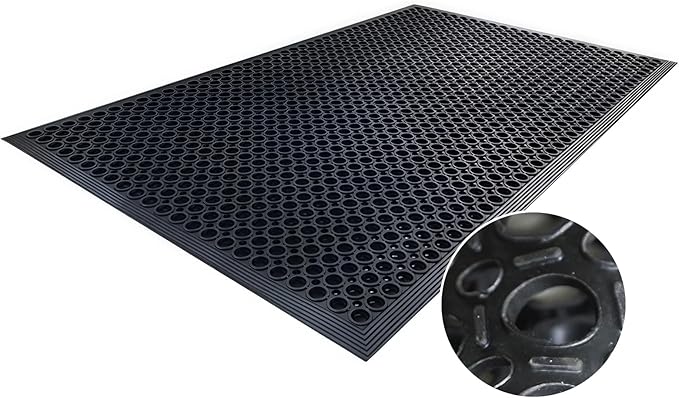 ラバーマット 屋外用 極厚1.2cm 有孔 滑り止め 排水 防水 防泥 耐寒耐熱 業務用 玄関 駐車場 作業場 雨雪対応 抗菌加工 ゴムマット (60*90CM)
