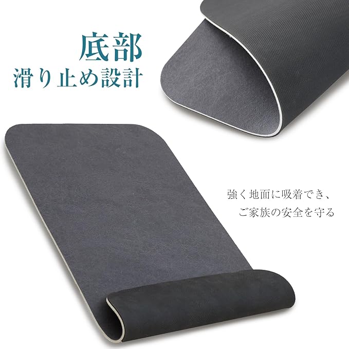 【安心の滑り止め仕様】浴室や洗面所は水気が多く、マットがずれたり滑ったりする危険があります。滑り止め加工を施した珪藻土マットなら、しっかりとした安定感が得られ、転倒やケガのリスクを軽減。毎日の使用も安心です。
