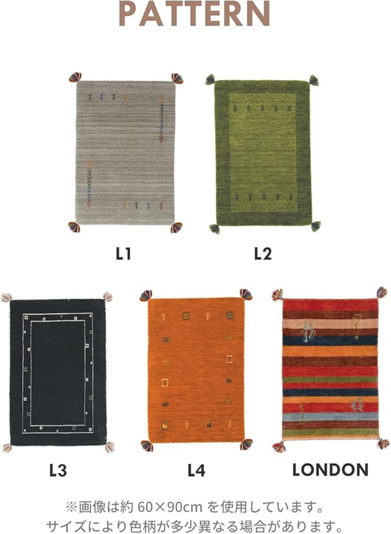 萩原 ギャッベ 玄関マット 屋内 ブラック 約60X90cm 「LORRI BUFF L3」 濃密毛足