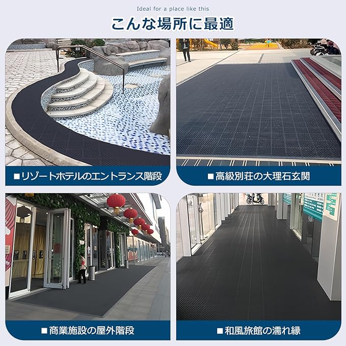多様な設置シーン対応 – 連結式20cm角ユニットで自由カット可能。商業施設・旅館・大理石玄関など和風/モダンな外観に融合。