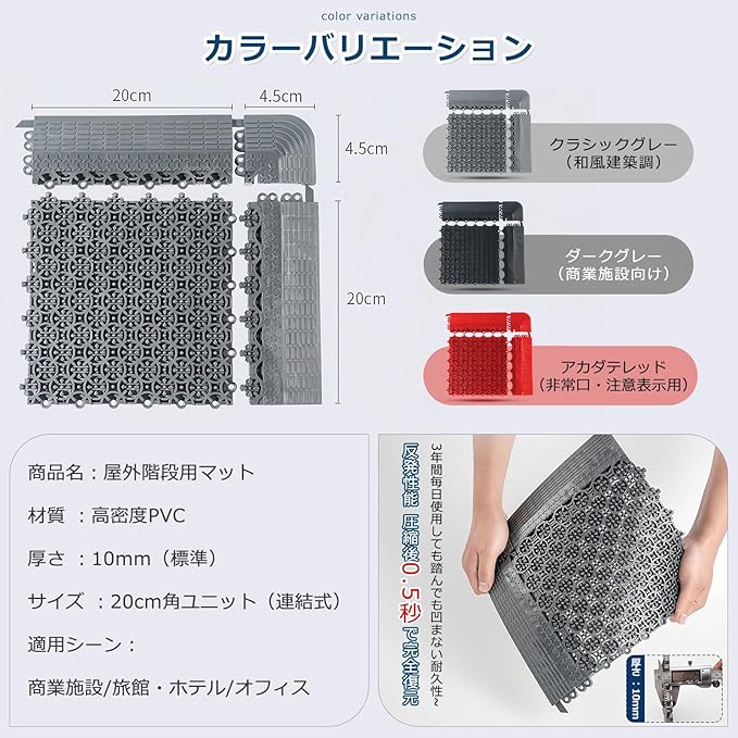 革新の3秒排水システム – 蜂の巣状立体メッシュ設計で98.7%の排水効率!雨の日も水たまりゼロ、階段の安全性を徹底サポート。