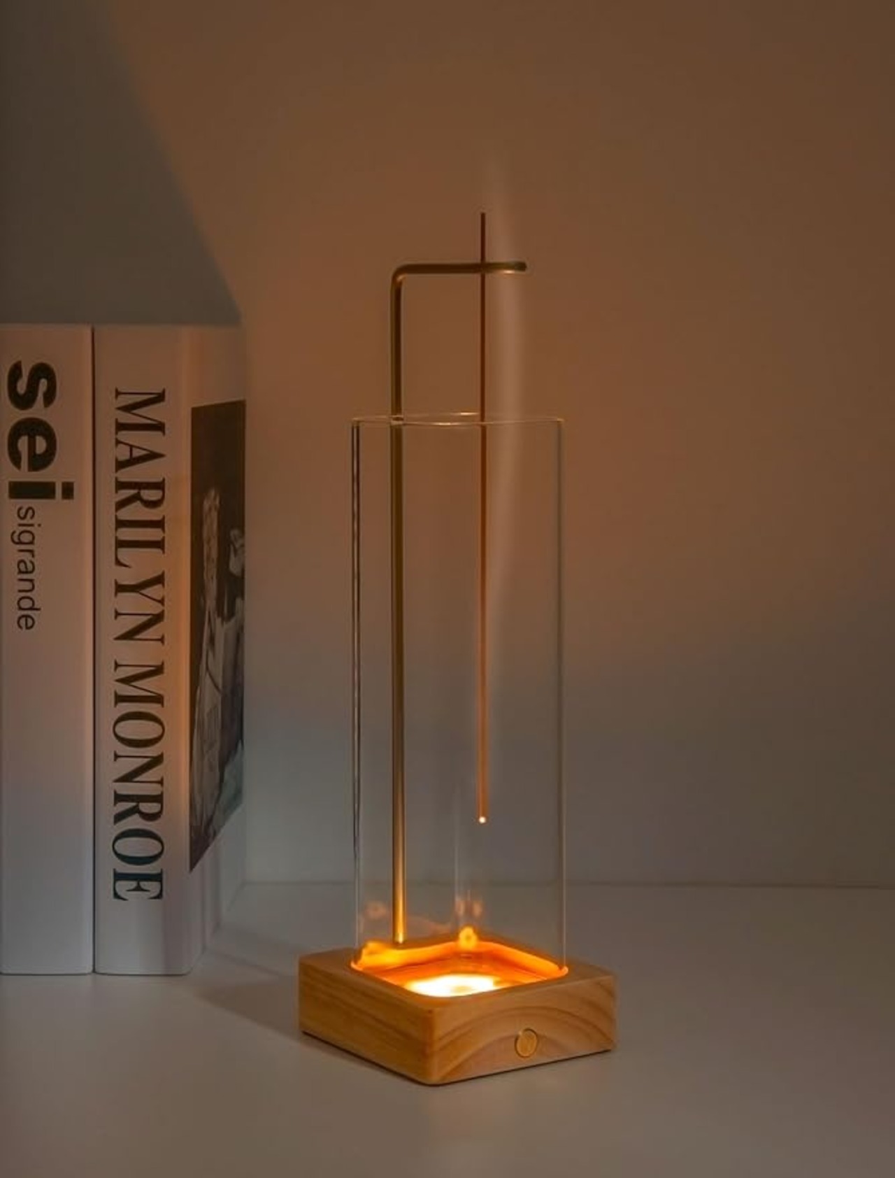 【書斎と寝室の香道道具】お香立ては書斎での穏やかな香り時間に、寝室でのリラックスタイムに最適です。防灰ガラスカップと LED 調光が香炉の実用性を高め、癒しの香道体験を日常に溶け込ませます。