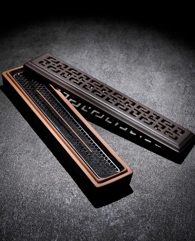 【セラミック製の香立て】 上質なセラミック製の香立ては、燃え尽きることがなく耐久性に優れています。灰をしっかりと受け止める設計で、お香を清潔に楽しめ、お手入れも簡単。蓋付きなので、風や扇風機を使っていても灰が舞い散らず、安心してご使用いただけます。偶発的な接触によるやけどや消火のリスクも軽減します。