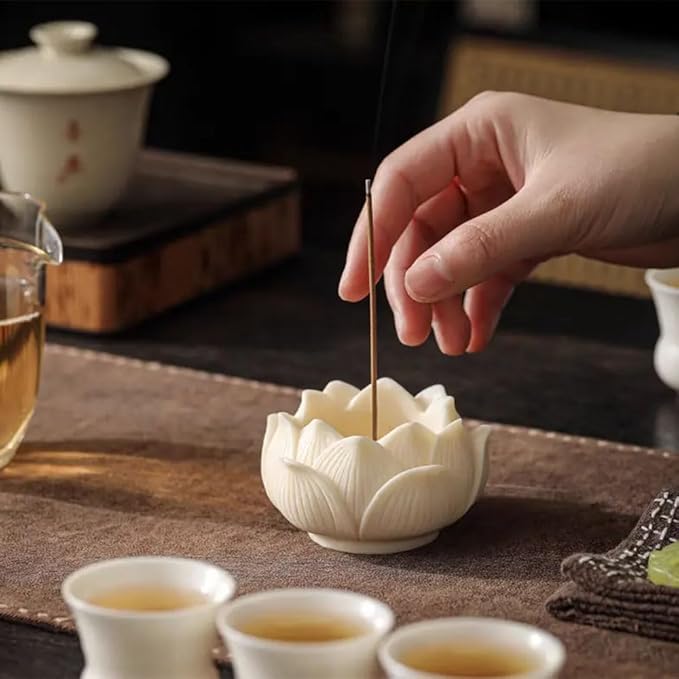 【蓮の花デザイン】線香立て良好な質感、ミニマムでシンプルなデザイン、美しくモデリングされた蓮の花のフォルム,熟練した職人が1個ずつ丁寧に手造りで作られたお香立てです。