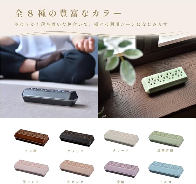 寝かせる線香皿 清流シリーズは、つややかで美しい、上品な有田焼の質感や、シンプルかつ特徴的なデザインが特徴です。全8色のカラー展開で、どのような雰囲気のお部屋にも馴染みます。スタイリッシュかつ温かみのある本品は、様々なシーンで活躍することができます。