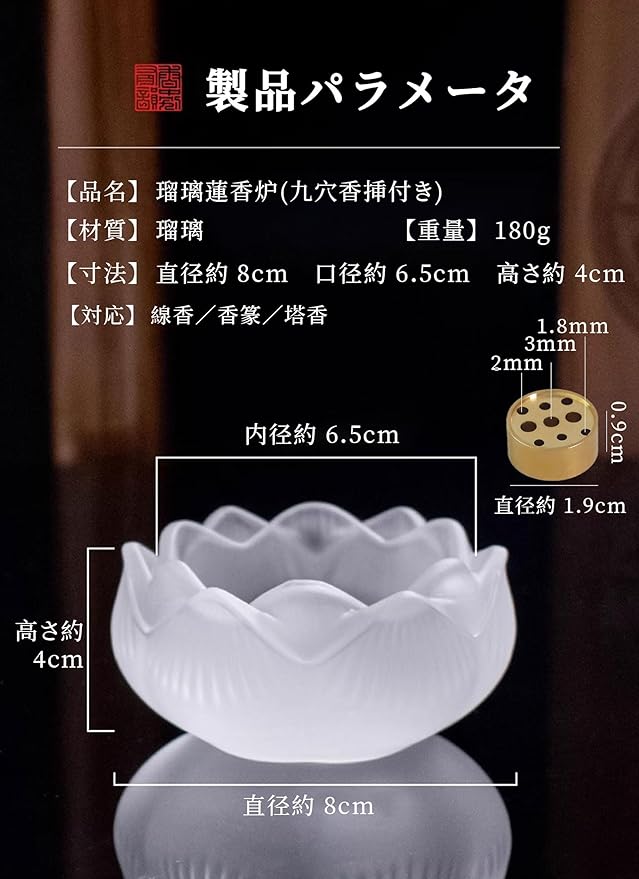 お香立て 線香立て 瑠璃製 透明 蓮の花形 九穴香挿付き お線香たて 可愛い おしゃれ 仏壇用品 オシャレ お香たて 香炉 茶道 香道 ヨガ 瞑想 仏具 せんこうたて インセンスホルダー おこうたて お香スタンド