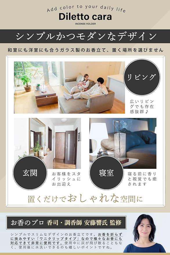 【お香のプロ監修】 お香立て 香炉 インセンスホルダー 灰がこぼれない 折れにくいクリップ式 ガラス高さUP 線香立て 吊り下げ インテリア 長香対応 おしゃれ お香 【90日保証】 【日本企業開発】 【国産高級木材使用】 [Diletto cara]