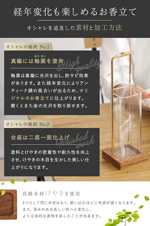 FELIS お香立て [日本企業開発] お香 香炉 線香立て インテリア 灰がこぼれない お洒落 可愛い 吊り下げ 真鍮 ガラス シンプル (ナチュラル)