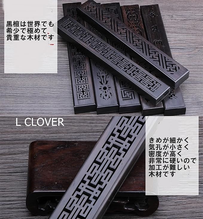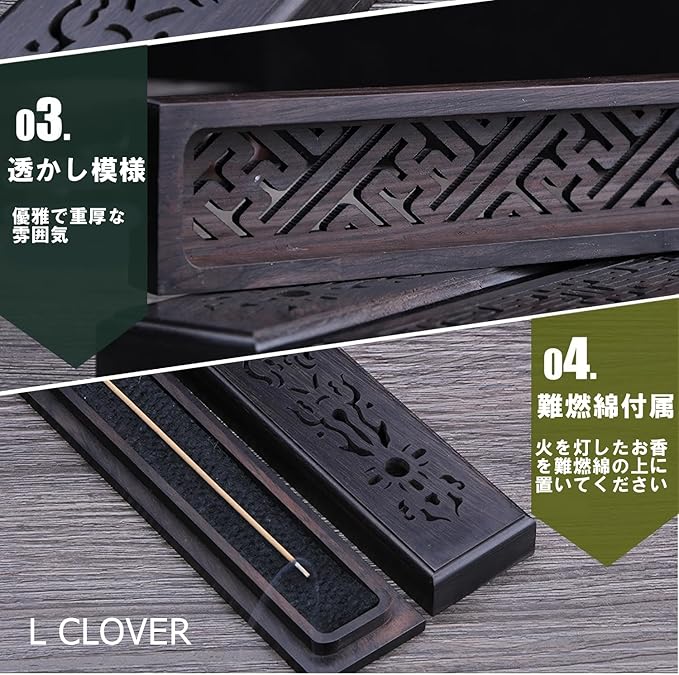 L CLOVER 線香 横置き 黒檀 お香立て 線香立て 蓋付き 灰が飛ばない 灰がこぼれない 香炉 線香皿 木製 仏壇 蓋付き (如意)