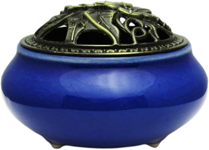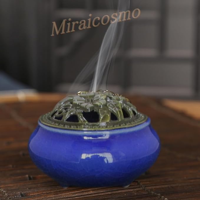 香炉 お香立て セット 心を落ち着かせてくれる 色合い 陶器 (ネイビー)