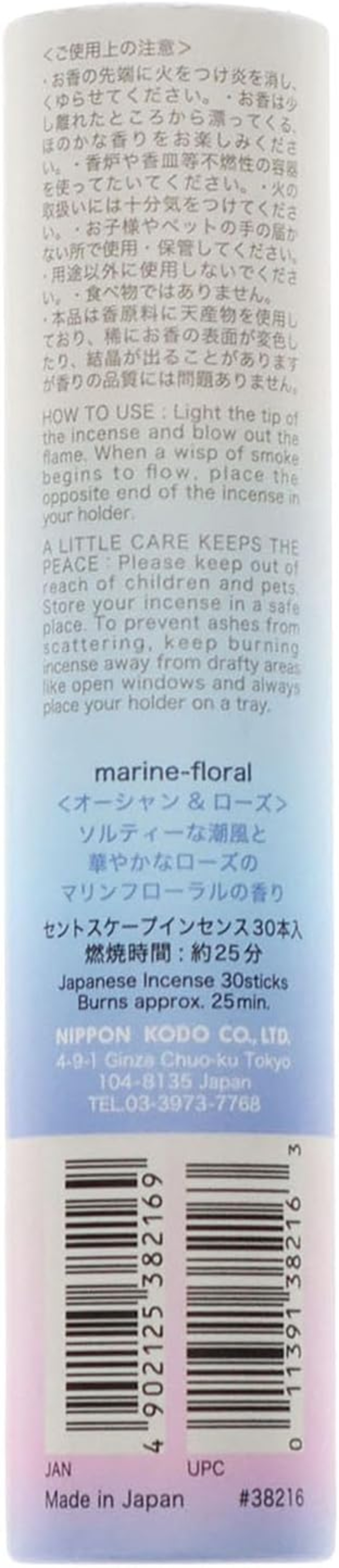 ●オーシャン&ローズ●ソルティーな潮風と華やかなローズのマリンフローラルの香り ●Scentscapeは移りゆく季節とともにカラフルに広がる""香り(scent)""と景色(""scape"")をテーマにしたお香です。●2種類の香りを独自に掛け合わせて、「今、聞きたい」(=その香りをゆっくり味わうこと)香りを創りあげています。●それぞれの香りの心象風景をイメージしたグラデーションカラーのパッケージは、流動的な香りのうつろいを表現しました。●火をつける前から香りがほのかに漂うお香の特徴に着目し、蓋を外してお香入れとしても使える設計に。●お香としてはもちろん、香りのインテリアとしても生活に色どりを与えてくれます。●ハンドメイドで仕上げるMade in TOKYO。