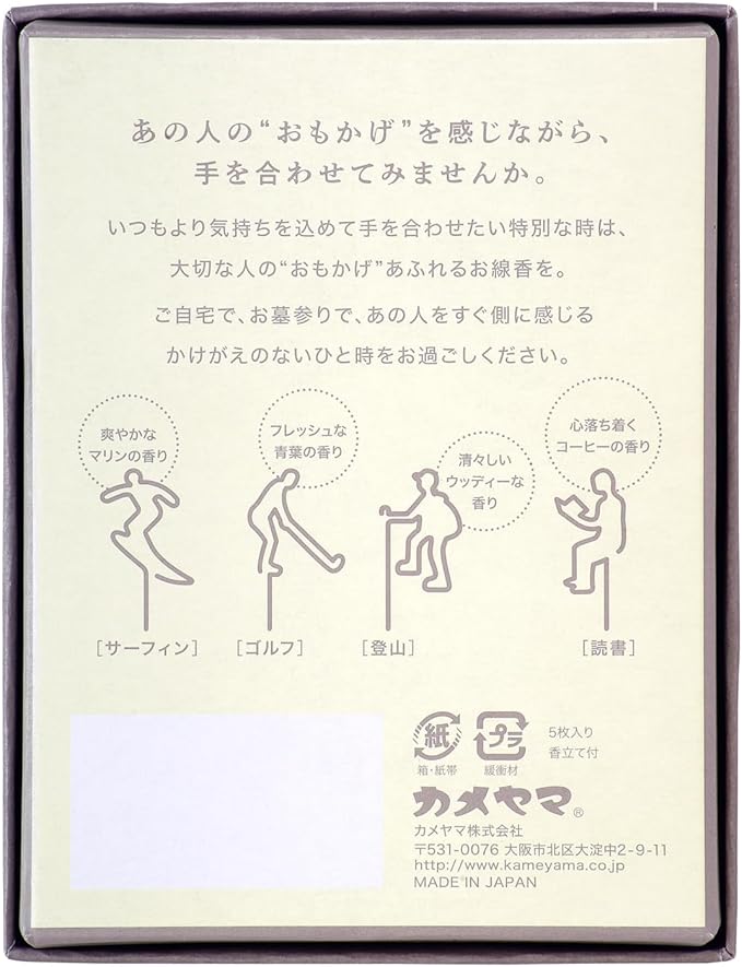カメヤマ あの日のおもかげ線香 読書 5枚入 ⼼落ち着くコーヒーの⾹り マグネット式香立て お香