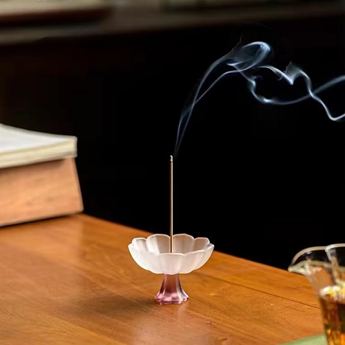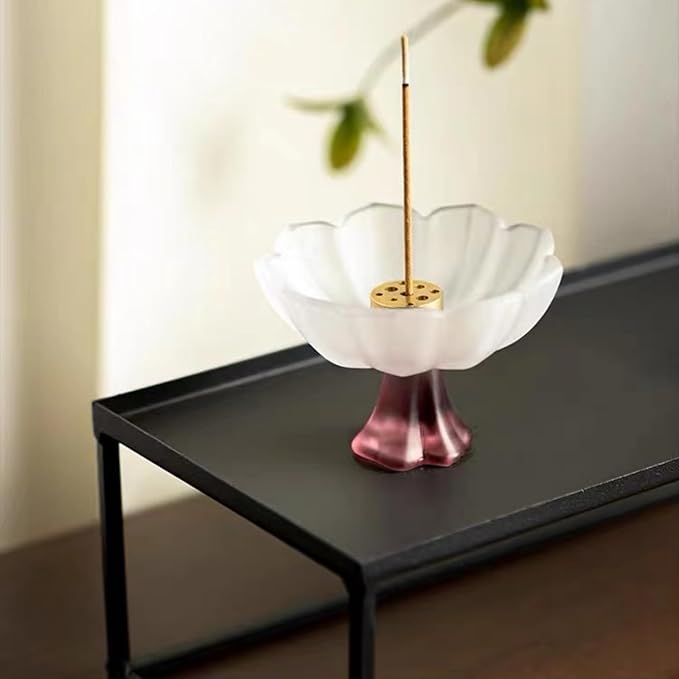 お香立て 線香立て【琉璃ガラス製・おしゃれな線香香立て】香皿 香炉 香立 お香置き 灰こぼれない インセンスホルダー シンプルデザイン 瞑想、ヨガ、読書などに対応 幅広い使い方 (透明な紫)