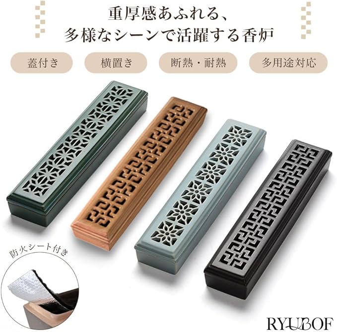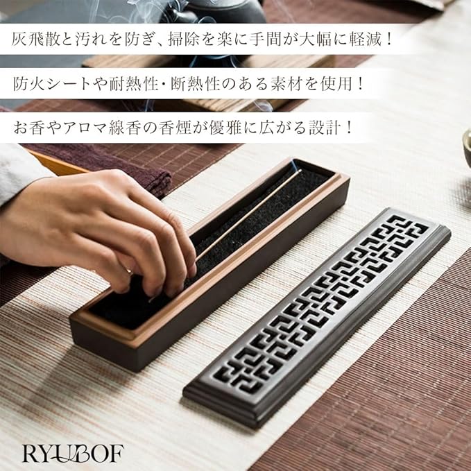 【防火シート・耐熱仕様で安全性も重視】防火シートと断熱・耐熱機能を備えた香炉設計なので、火災リスクを最小限に抑えながら安心して線香を焚くことができ、香りが長時間持続するのも特徴です。