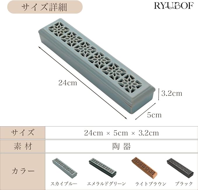 【重厚感あふれる陶磁器製線香ケース】線香ケース・線香立てとして、インテリア性を高める陶磁器製の本体は、横置きや寝かせる設計で和空間にも洋室にも馴染み、落ち着いた雰囲気を演出しつつ仏壇やリビングにも最適です。