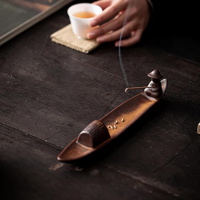 [シダーエイト] 釣り人 お香立て 舟形 おしゃれ レトロ 線香立て かわいい インテリア お香 線香 インセンスホルダー