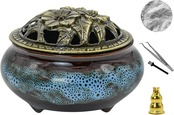 パッケージ内容:香炉(蓋付き)+ 香立て *1(瓢箪型)+防火綿*1+ブラシ*1+ピンセット*1