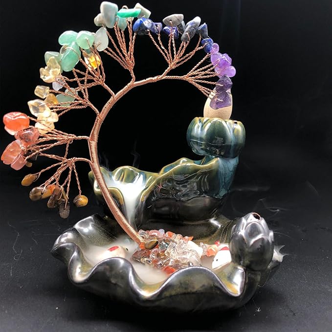 上質な作成:線香立てはいい品質のセラミックス製になり、丈夫で耐久性がいいで、長い時間に使用することができます。お香ホルダーの樹はカラフルの天然水晶と金属で作られ、綺麗に作られた同時に、強度もよくて、和室、茶室などの室内、または庭園などの室外場所でお使いいただきます。