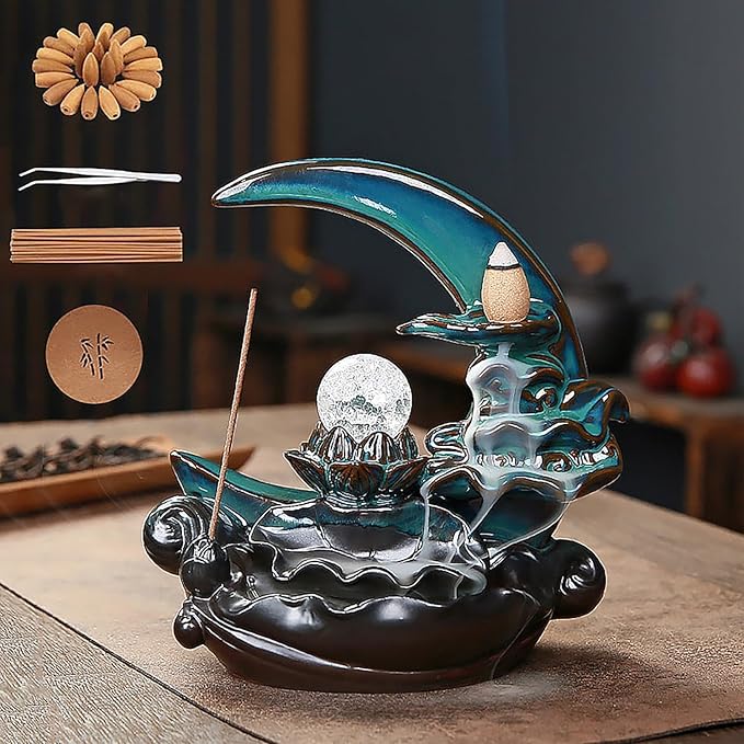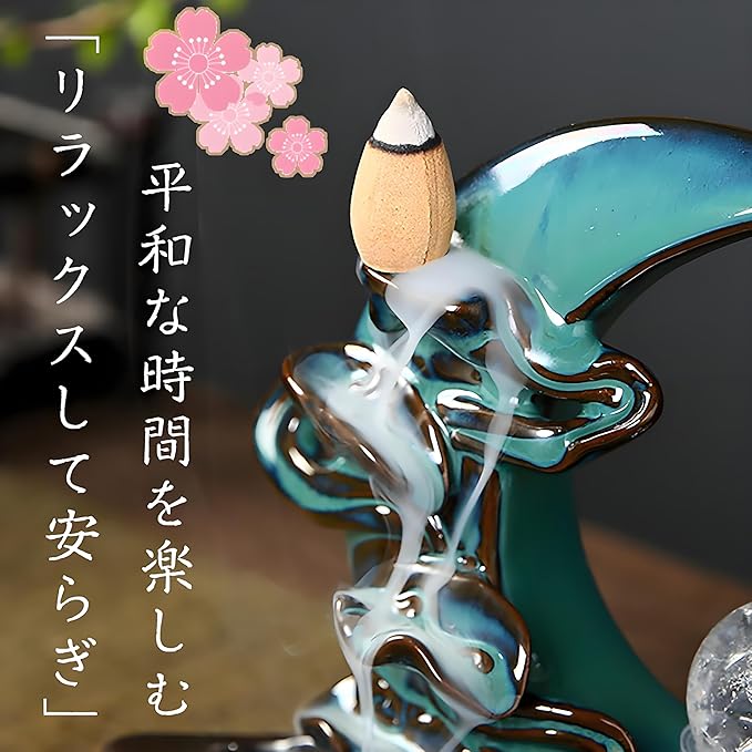 【 重力に逆らう「香煙の滝」で癒やしを】 点火すれば、白煙が優雅に下方へと流れ落ちる「逆流」現象が発生。空中に浮かぶ神秘的な香りの滝が、視覚と嗅覚で深い安らぎと静寂をもたらし、お盆に想いを馳せる時間をより豊かにします。