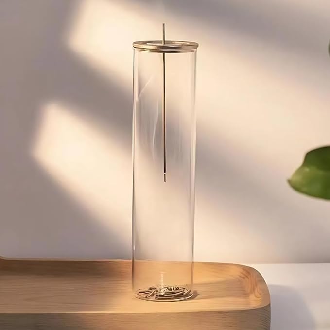 【灰が飛び散らない設計で安心】ガラス容器の高さが20cmと高めになっているため、空気の流れがあっても、灰が飛び散る心配がありません。ストレス無く、香りを楽しむことができます。不意のくしゃみや咳からもガラスが灰の飛び散りを防いでくれます。