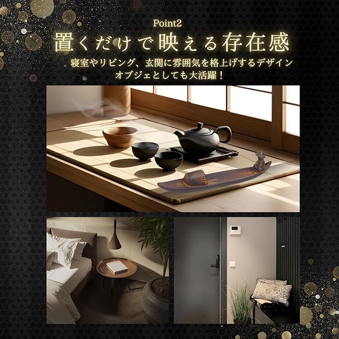 【インテリア性の高いアイテム】存在感のあるデザインで、オブジェとしても活躍。リビング、寝室、玄関など、置くだけで雰囲気を格上げします。スティックタイプ専用設計で、使い方もシンプル。陶器製なので、使った後はサッと拭くだけで清潔に保てます。