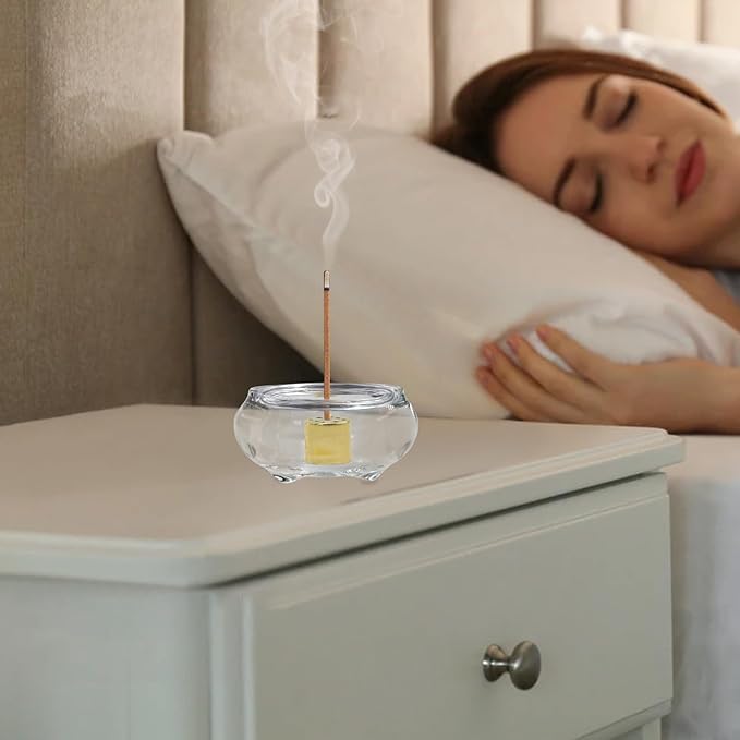 MrMrKura お香立て 透明 香炉 ガラス製 小さい 2点セット 線香立て おしゃれ お香たて お香皿 可愛い お香置き シンプル お線香立 ミニ仏壇 インセンスホルダー お香 仏壇用 瞑想 書斎 ヨガ ストレス解消 プレゼント (透明)