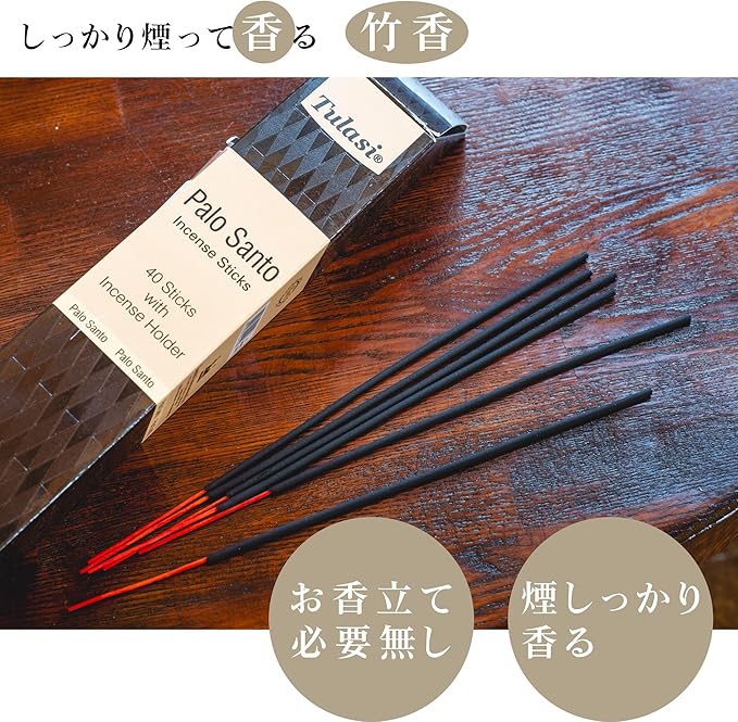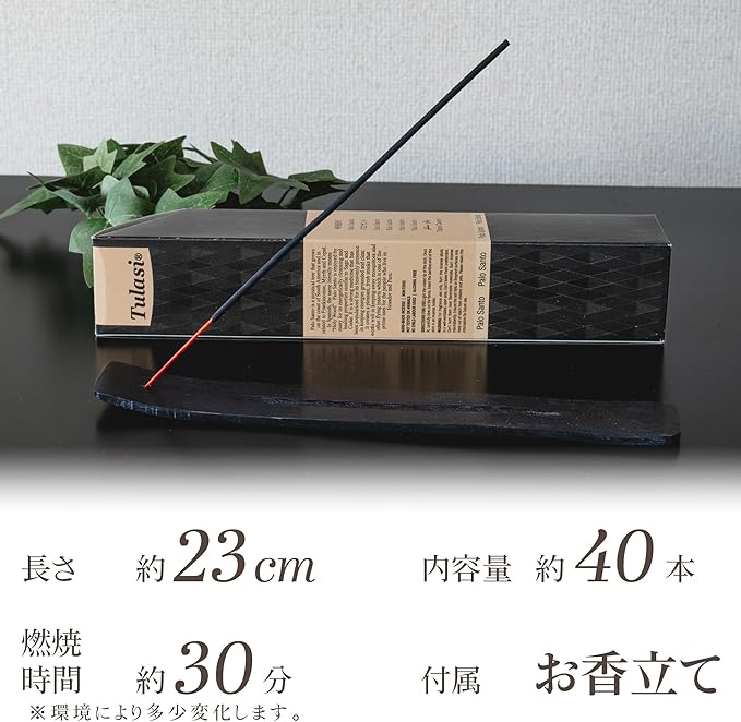 【詳細】長さ : 23センチ / 燃焼時間 : 約30分(環境により多少変わります) / 内容量 : 40本入り / 付属 : 木製お香立て