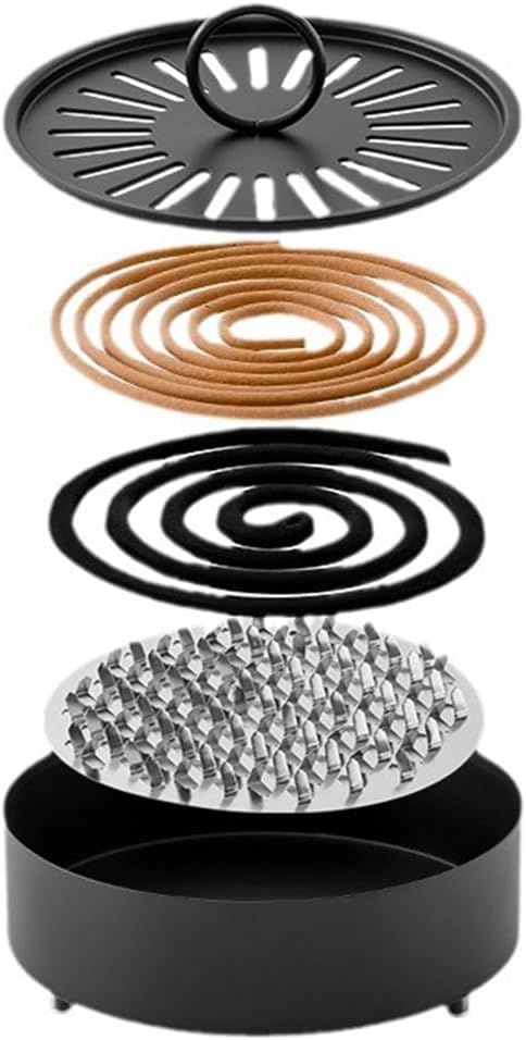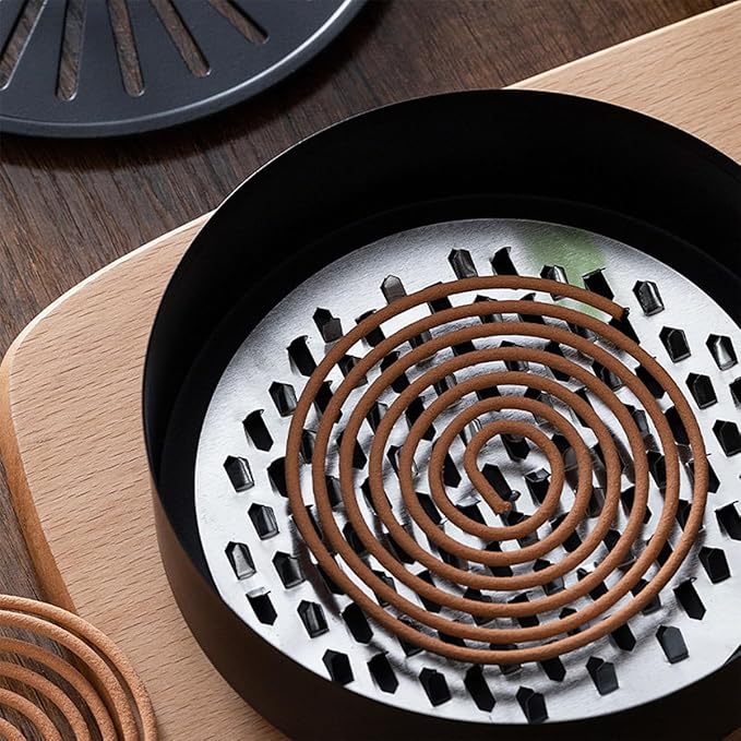 蚊取り線香皿 おしゃれ 渦巻香用 線香皿 蓋が付き 蚊取り線香ホルダー 鉄製 蚊取り線香入れ おしゃれ 蚊遣り 蚊よけ モダン インテリア 刺さずに使え 卓上 置物 (黒)
