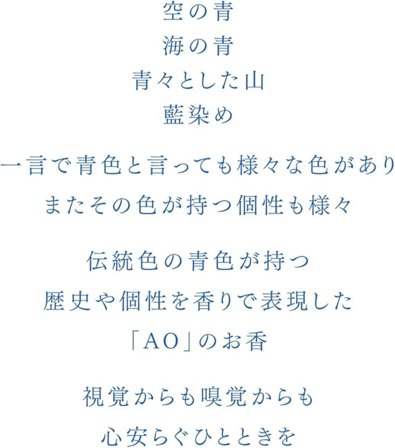 伝統色の青色が持つ歴史や個性を香りで表現した「AO」のお香