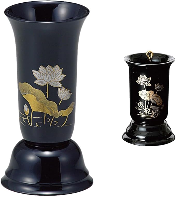 サンメニー 本格 仏前 ろうそく 入れ 線香差し セット 山中漆器 日本製 仏壇 用 線香差し 蝋燭 立て 線香入れ せんこう いれ ろうそく たて 仏具 お仏壇 小物 黒 蓮 お供え 線香立て インセンスホルダー 毎日の お供え お清め に 手元供養 コンパクト シンプル 小さい 小物 短いろうそく 対応 直径6.4 高さ10.5cm [Sunmany]
