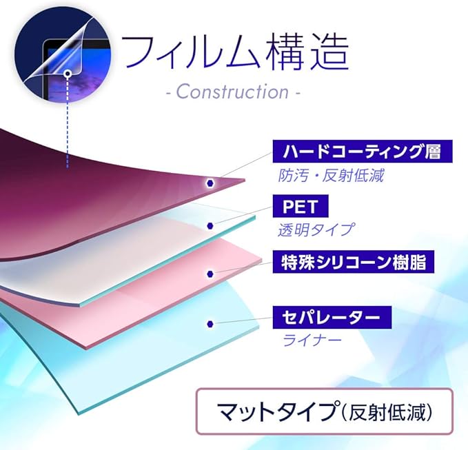 ★フィルムの光沢感を少し抑えたマットタイプの保護フィルムです。防汚性に優れていて、埃が付きにくく油性マジック等もはじきます。