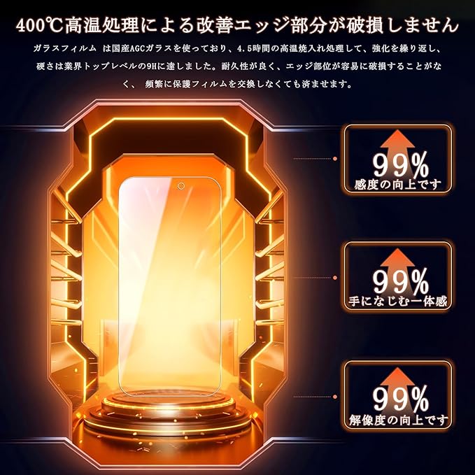 3. 【業界最高硬さ9H&飛散防止】: アイフォン17 pro 強化ガラスフィルム ブルー 業界最高レベルの9H+硬度を有し、4.5時間以上の高温クエンチ処理を受け、市販品の5倍になり、硬さが3Hの通常フィルムより傷されにくくて、いずれ鍵、はさみ、ナイフ、スクレーパー、小型の電動ドリルなどでも、前後に引っ掻いた後、フィルムの表面に傷を残しません。基本から携帯電話の画面を保護し、更に飛散防止設計により、ガラスが割れた際の飛散を防止し、高い安全性を実現します。