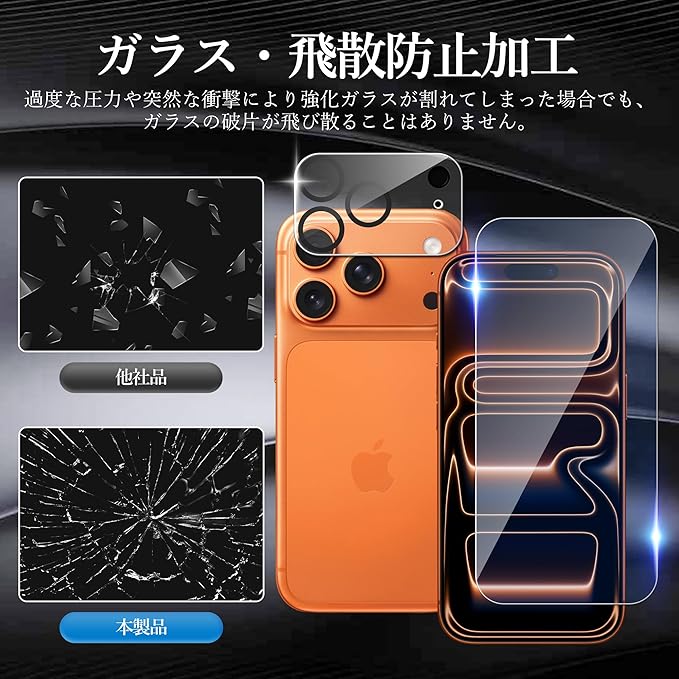 【セット内容】:【2枚】iPhone 17 Pro 用の 保護フィルム ブルーライトカット+【2枚】iPhone17 Pro 用の カメラフィルム