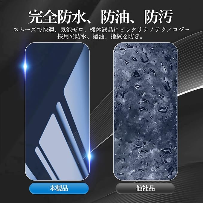 【指紋防止 撥水撥油性】:疎油性コーティングがされているため 、指紋を防ぎ、美しい画面で滑らかで快適な操作が可能です。付着した汚れもふき取りやすくメンテナンスも簡単です。スムースな操作を実現 スマートフォンと密着するので、、表面の手触りがスムースで 高い操作性を実現します
