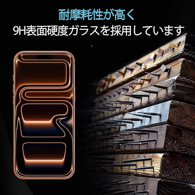 【9H硬度・日本製ガラス素材】iphone 17 Pro 保護フィルム 日本旭硝子製ガラス素材採用 最上級強度のガラスを使用し表面硬度は9H。万が一スマホを落としてガラスが割れても、 ガラス破片が飛び散らないような安心設計。 飛散防止 、ガラス破片から守ります。
