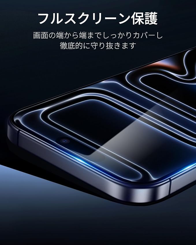 【軍事規格の保護力】iPhone 17 Pro ガラスフィルムの最大15kgの力に耐久する超強靭な強化ガラスは、落下、衝撃、傷から画面を強力に保護します。表面硬度9Hガラスを採用です。スマートフォンがバッグの中の鍵などの鋭利なものにぶつかっても、iPhone 17 Pro の画面を傷から守ります。2.5Dマイクロカーブエッジは、iPhone 17 Proのスクリーンの輪郭に合わせて精密設計されており、シームレスな保護、ホコリ蓄積の低減、ケースに適したフィット感を実現します