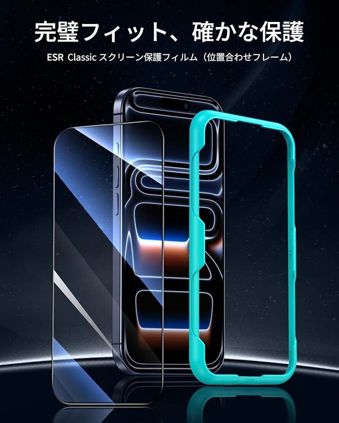 【HD高画質 高透過率】 ESR いPhone17Proプレミアム高透明ガラスは、本来のディスプレイの鮮明さと撮影品質を維持するため、スムーズなFace ID機能の使用が行えます。操作は直ちにフィードバックします。遅延はありません、保護膜は優れた操作手触りをもたらします