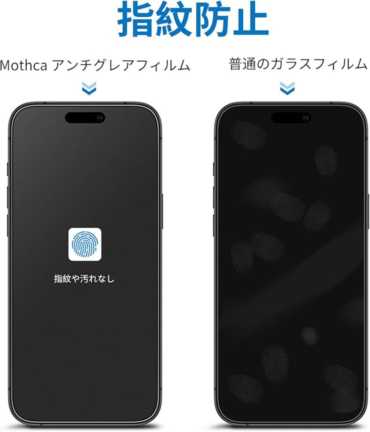 Mothca アンチグレア iPhone 17 Pro Max対応 ガラスフィルム 保護フィルム 強化ガラス サラサラ タッチ感 指紋防止 反射防止 ゲームフィルム ガイド枠付き 液晶 日本旭硝子製素材 硬度9H 2.5Dラウンドエッジ加工 飛散/キズ防止 撥油撥水 アイフォン17 プロマックス用 6.9インチ