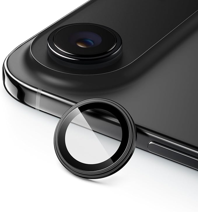 JETech iPhone 17 Air用 カメラレンズフィルム 1:1インビジブルフィット 9H強化ガラス製 個別の金属リングカバー ガイド枠付き 6.5インチディスプレイ HDクリア 1セット (ブラック)