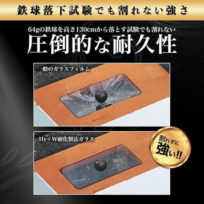 【日本製ガラス使用】 高品質な国産ガラスを使用し、W硬化製法により一般的な強化ガラスの3倍の強度を実現。