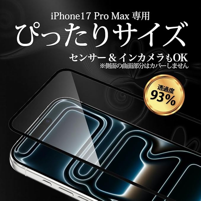 Hy+ iPhone 17 Pro Max 対応 ガラスフィルム 液晶保護フィルム 強化ガラス 9H硬度 日本製ガラス W硬化製法 全面保護 全面吸着 飛散防止 指紋防止