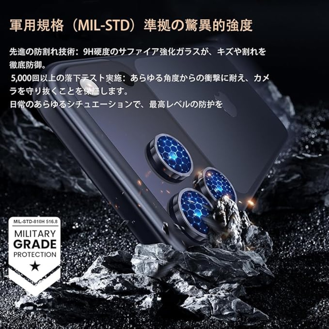 【軍用規格保護】個々のレンズプロテクターは、プレミアム強化ガラスで作られており、日常の硬いものや鋭利なものに対する強力な耐傷性を備え、衝撃性の高い落下からもカメラを安全に保護します