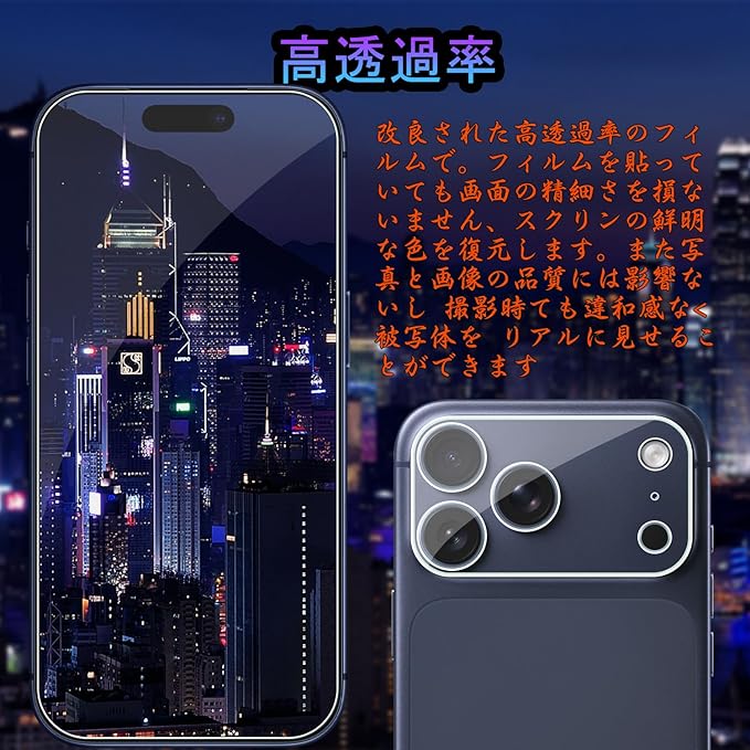 【対応機種】:iPhone 17 Pro Max ガラスフィルム (2枚) + iPhone 17 Pro Max カメラフィルム (2枚) ※<<安心保証>> 商品が届いた後、輸送中に破損したり、数が合わない場合がございましたら、お気軽に弊社までご連絡くださいませ。お客様からのお問い合わせ内容に応じて代替品交換・返金対応を提供致します。