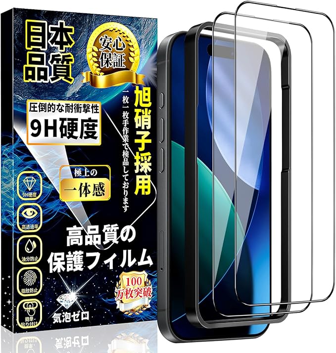 【最強硬度9H・飛散防止!対応機種】iPhone 17 Pro Max ガラスフィルム一般的な液晶保護フィルムの約6倍の強度。衝撃は強化ガラスに吸収されますので、ディスプレイにかかる衝撃負荷を軽減し。ディスプレイが破損することを防ぎます。万が一の破損時も飛散防止加工によって破片はフィルムに張り付いた状態で破片がほとんど飛び散らない安全性の高いガラスになっています。