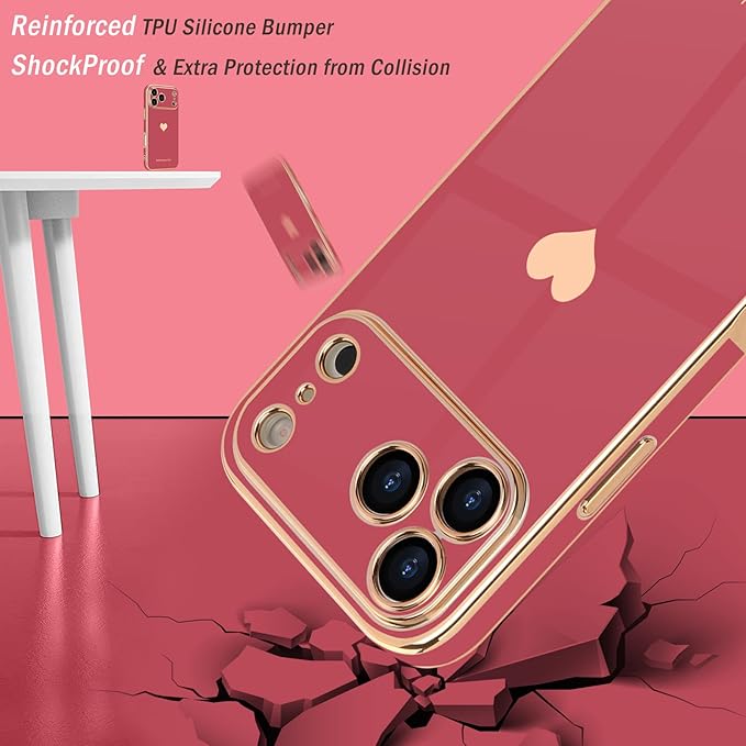【高級デザイン】 メッキ技術は、トリムと愛のハートパターンを飾るために適用されます、中央にプリントされた大きなハートが気分を明るくする、シンプルで可愛いデザイン。それはこのアイホン 17 Proケースをスタイリッシュで目を引く、女の子や女性のための素敵な贈り物になります